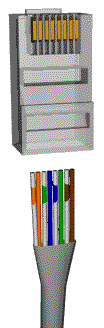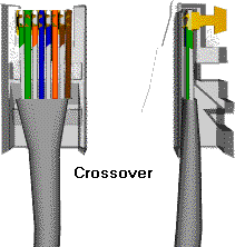 Een UTP crossover of crosslink kabel kun je gebruiken om twee computers met beide een UTP netwerkkaart aan elkaar te koppelen zonder daarbij de hulp in te hoeven roepen van een hub, switch, o.i.d. Om dit voor elkaar te krijgen zit een crosslink kabel - de naam zegt het al - wel anders in elkaar dan een 'gewone' UTP kabel. Hierboven is omschreven hoe een gewone UTP kabel wordt gemaakt. Beide kanten van de kabel sluit je hetzelfde aan. Bij een crosslink cable sluit je één kant anders aan dan bij een gewone UTP kabel. De aders moeten in een andere volgorde, en wel in degene die hiernaast staat aangegeven: 1: Groen-Wit 2: Groen 3: Oranje-Wit 4: Blauw 5: Blauw-Wit 6: Oranje 7: Bruin-Wit 8: Bruin |