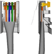 Controleer of de aders inderdaad in de goede volgorde zitten. Is dit het geval, knijp dan de plug dicht met de UTP krimptang. Wanneer je een “gewone” UTP kabel wilt maken, herhaal stap 1 t/m 3 voor de andere zijde van de kabel. |